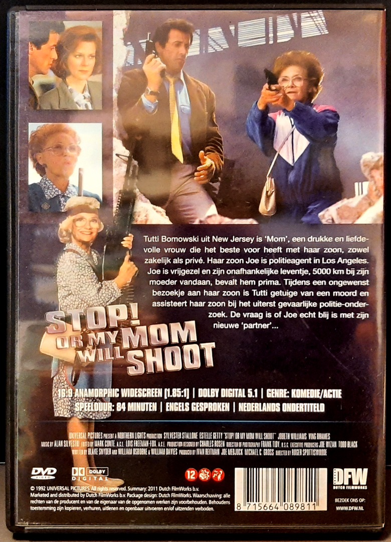 Stop or my mom will shoot you. Een humor/actiefilm met Sylvester Stallone en Estelle Getty.