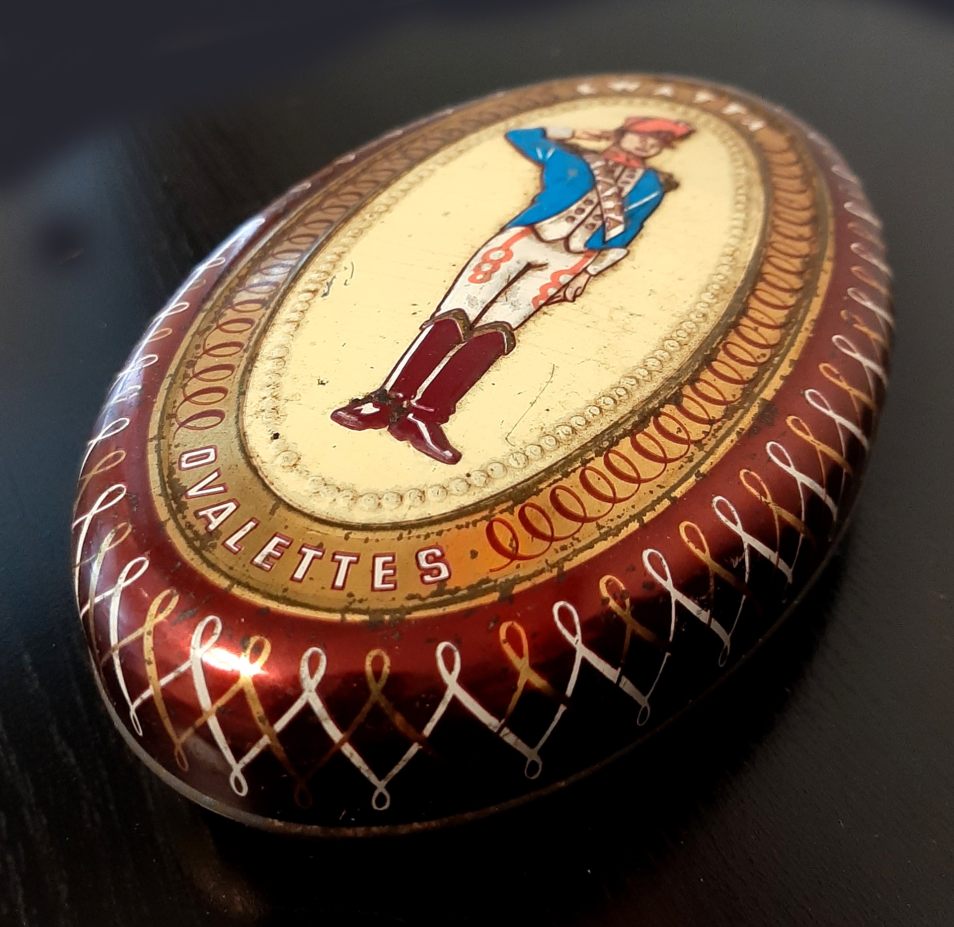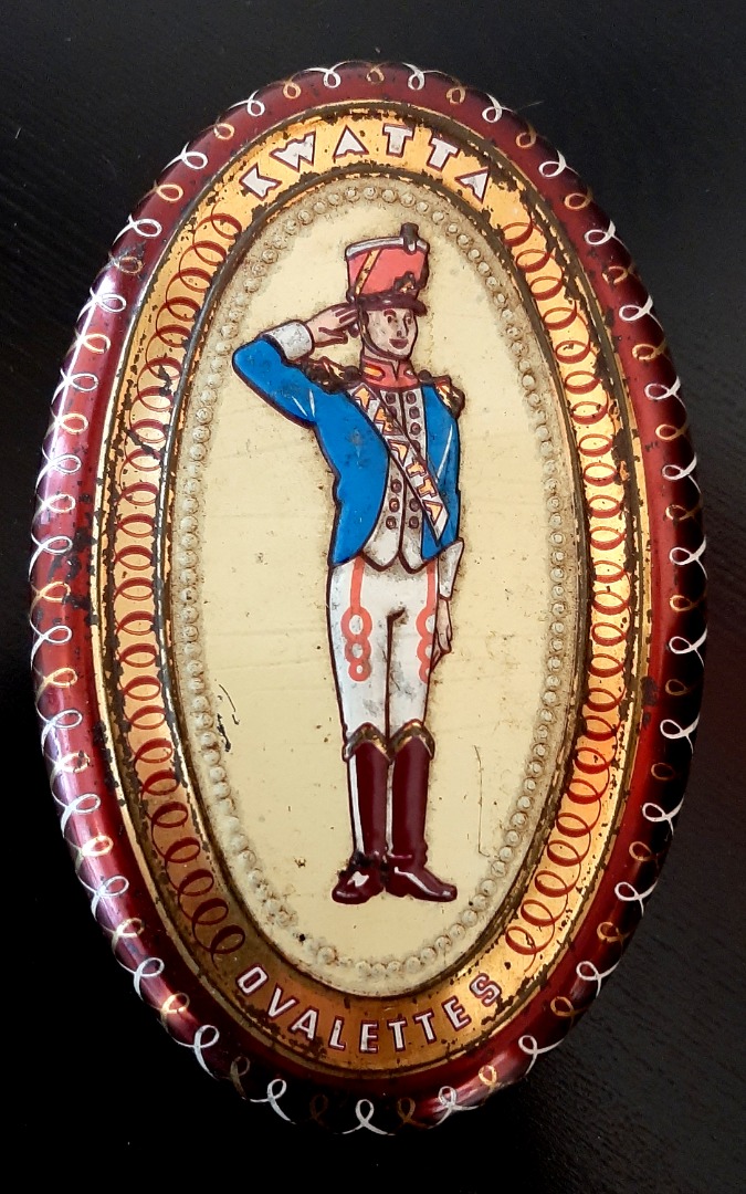 Blik Kwatta ovaal. Afmetingen: 16 cm. x 10 cm. x 3,5 cm.