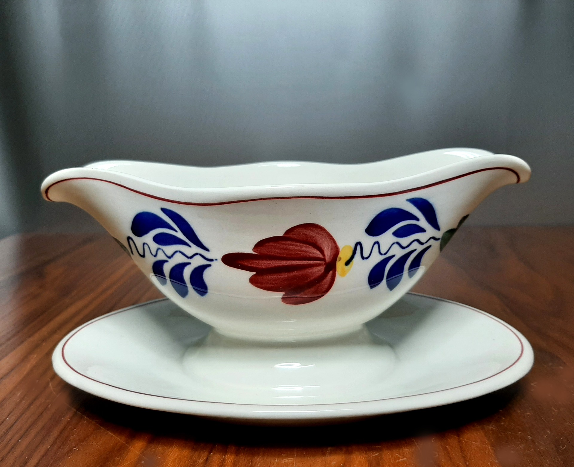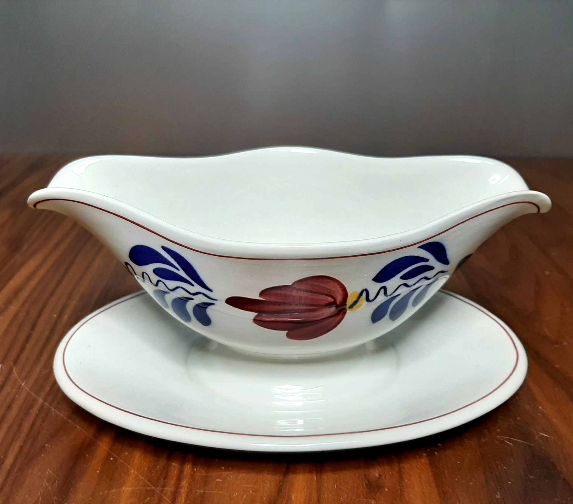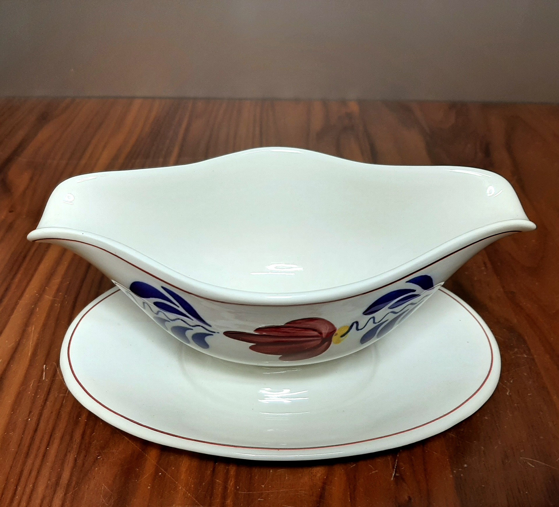 Jus schaal. Boerenbont. 20,5 cm. lang x 9,2 cm. hoog. Made by BOCH Belgium.