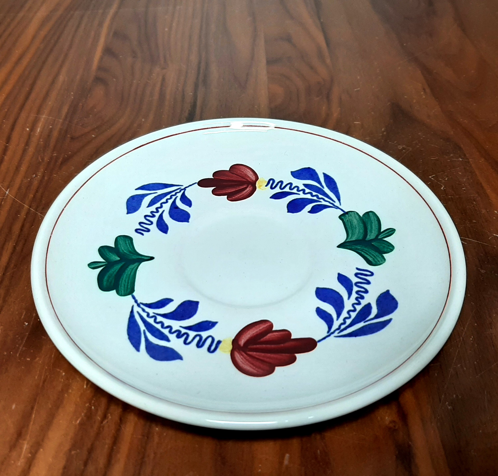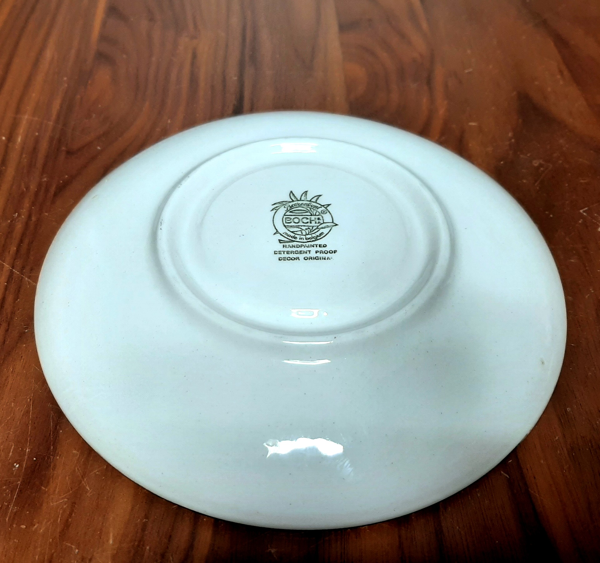Schoteltje 2. Boerenbont. Made by BOCH Belgium. Een groter formaat schoteltje. Doorsnede: 16,2 cm. Diverse stuks te bestellen.