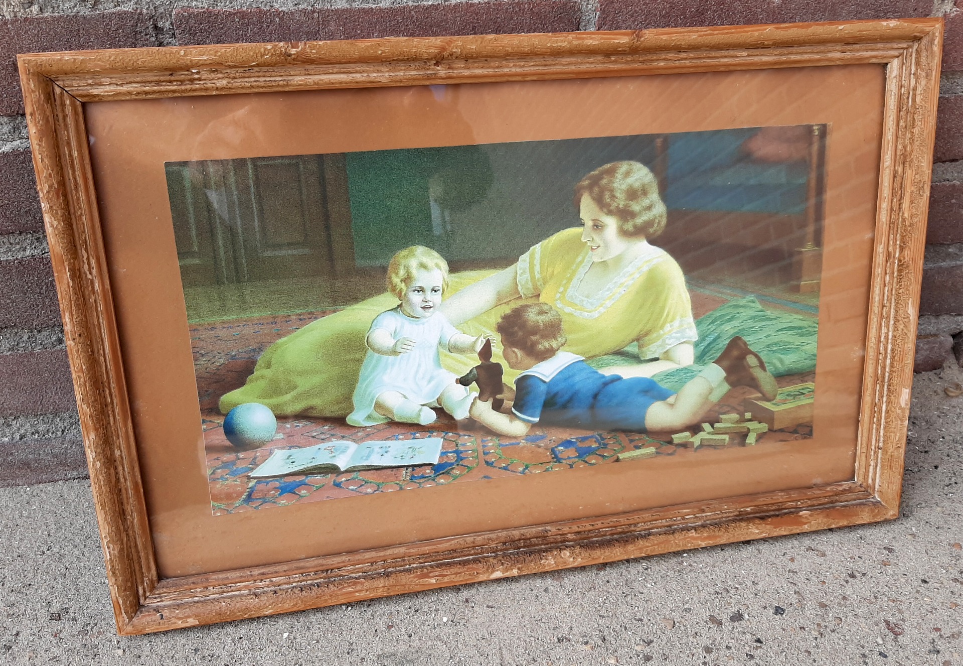 Oude prent in lijst 1. Formaat lijst: 59,5 x 31,3 cm.