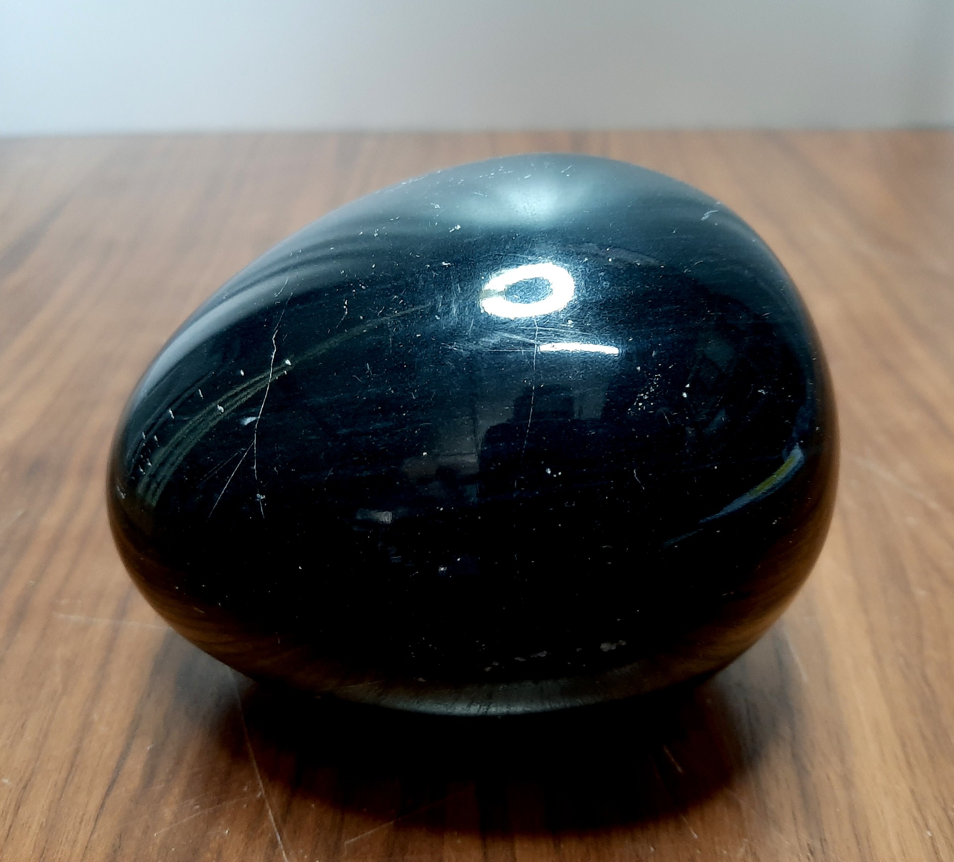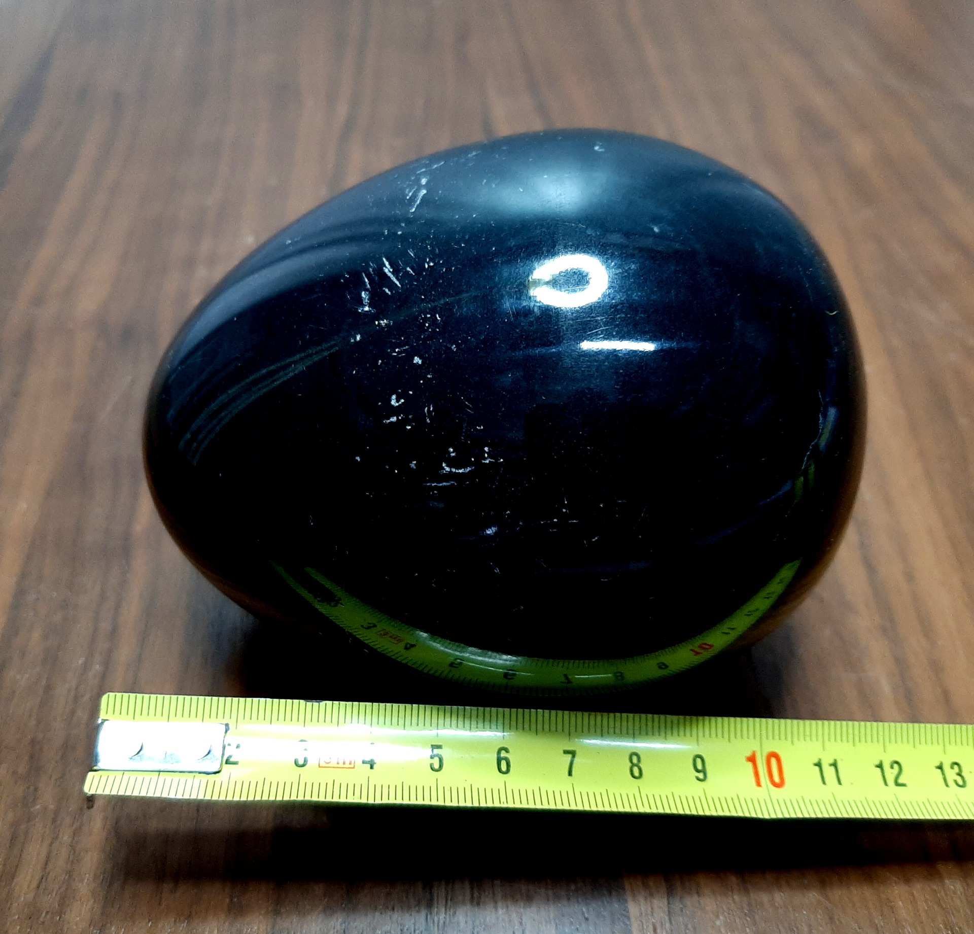 Hemaliet edelsteen ei. Dit ei gemaakt van het edelsteen Hemaliet heeft een lengte van 11,5 cm. en een gewicht van 1,5 kg.